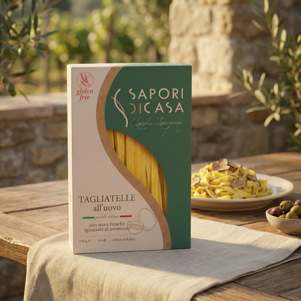 Klasične tagliatelle testenine za hiter, domač “gourmet” obrok. Odlično se ujamejo s tartufato, maslom ali oljčnim oljem in so idealna osnova za kremne omake.