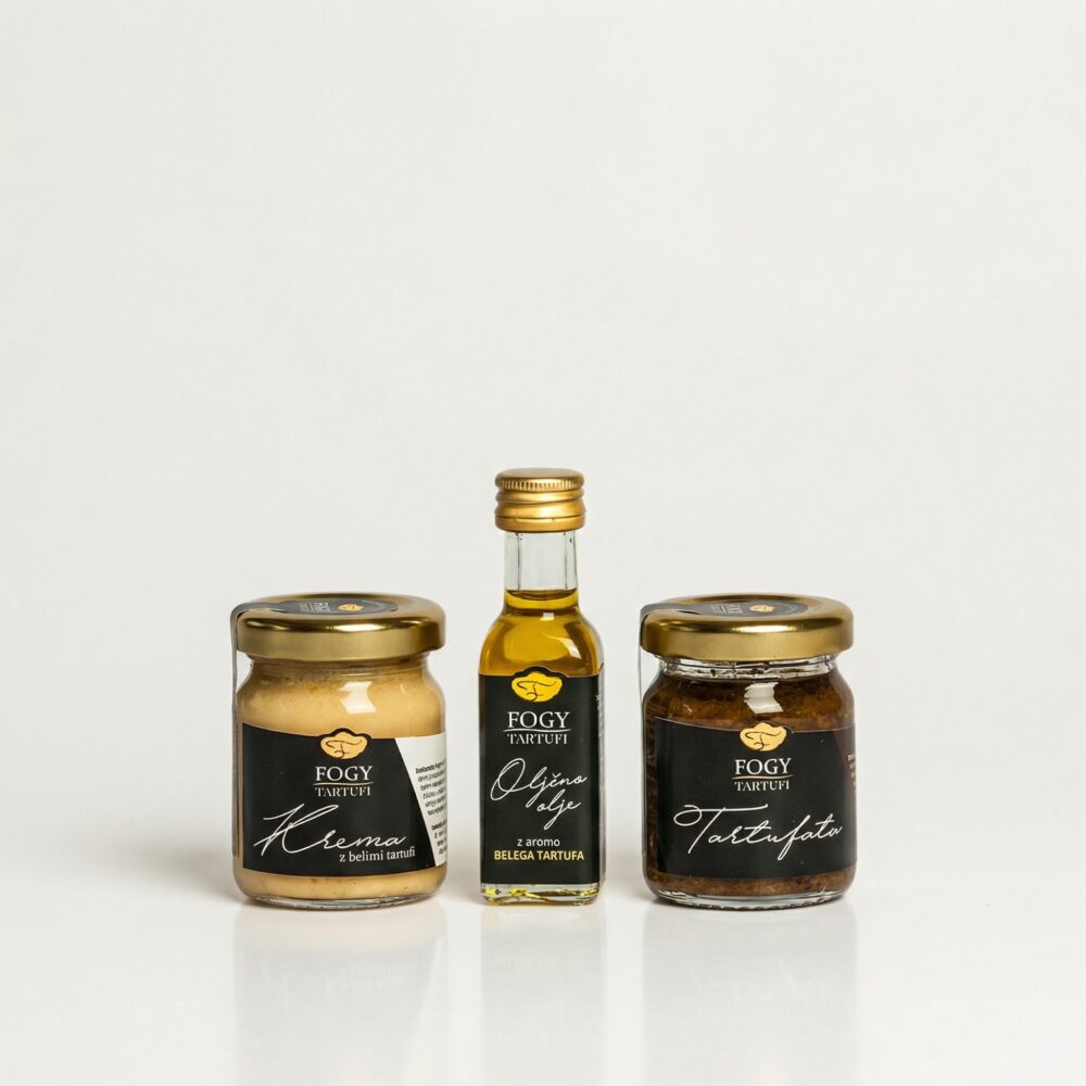 tartufata 50g, krema z belimi tartufi 50g, oljčno olje z aromo belega tartufa 20ml